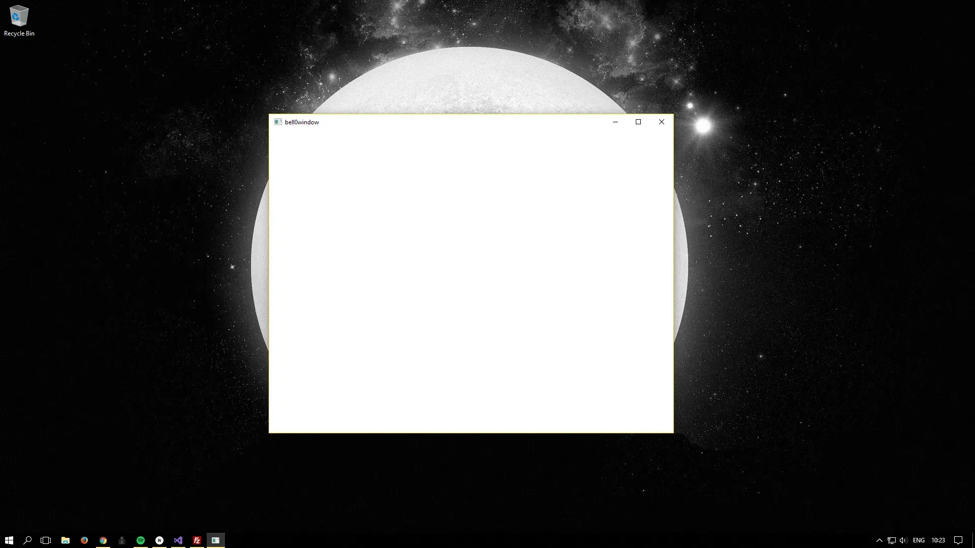 As a first demonstration of the power of the moon and the sun, we will create a window with the desired resolution read in from the configuration file bell0prefs.lua in the MyDocuments/bell0bytes/bell0tutorials/Settings folder.